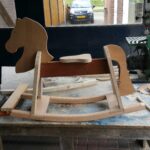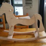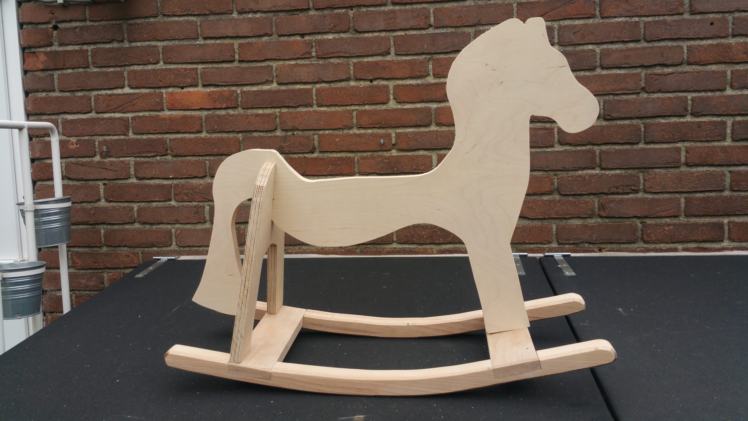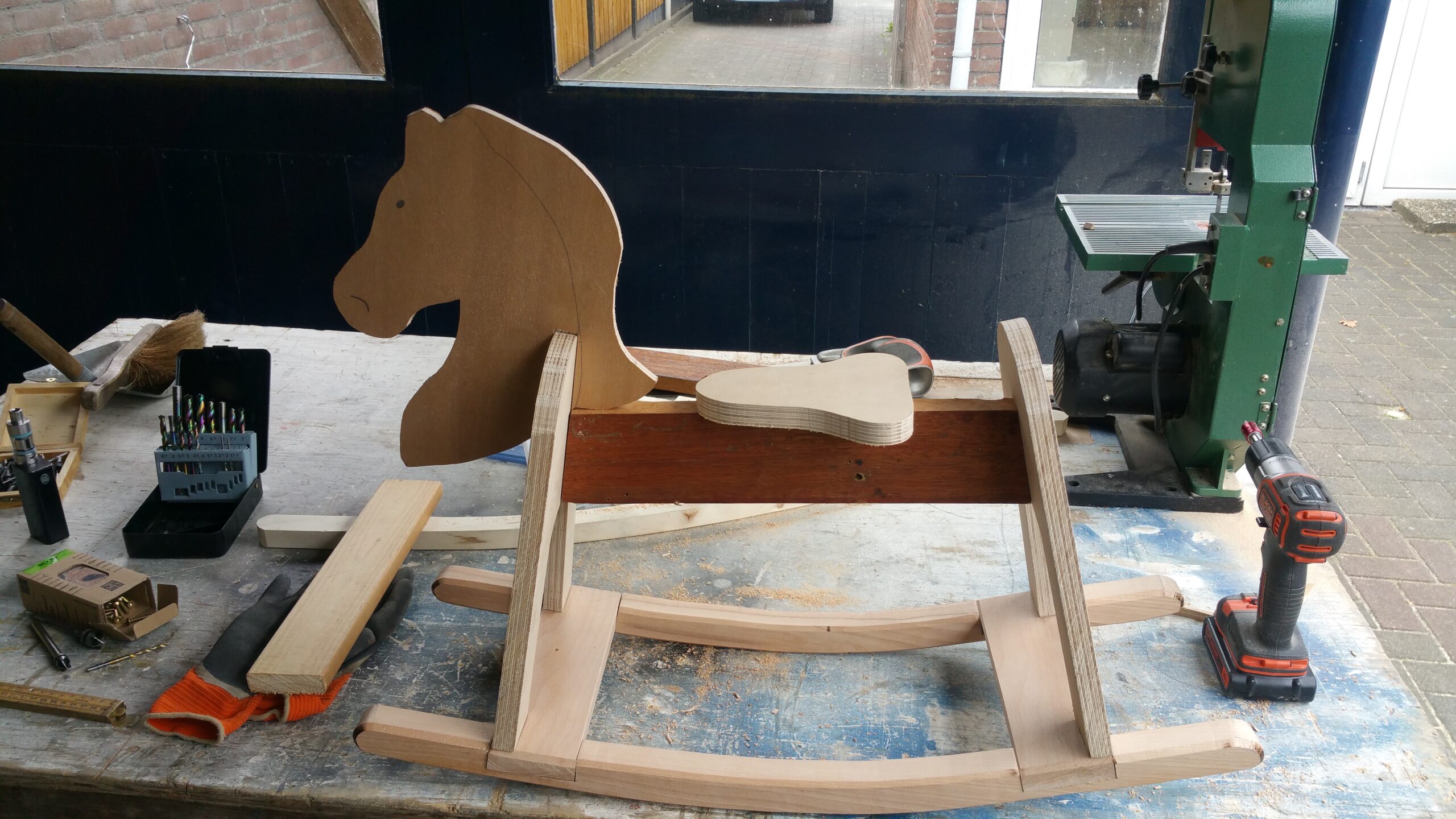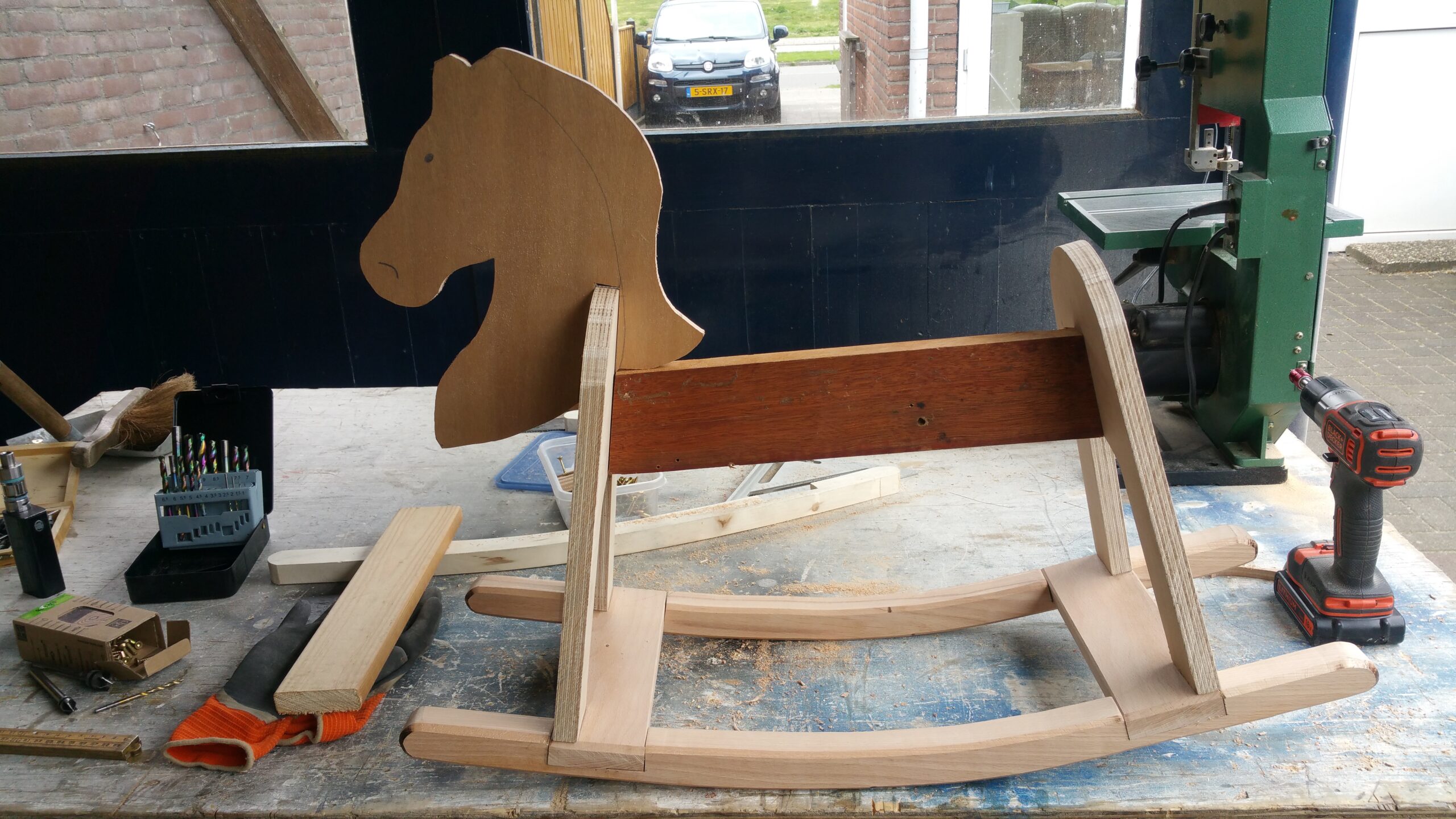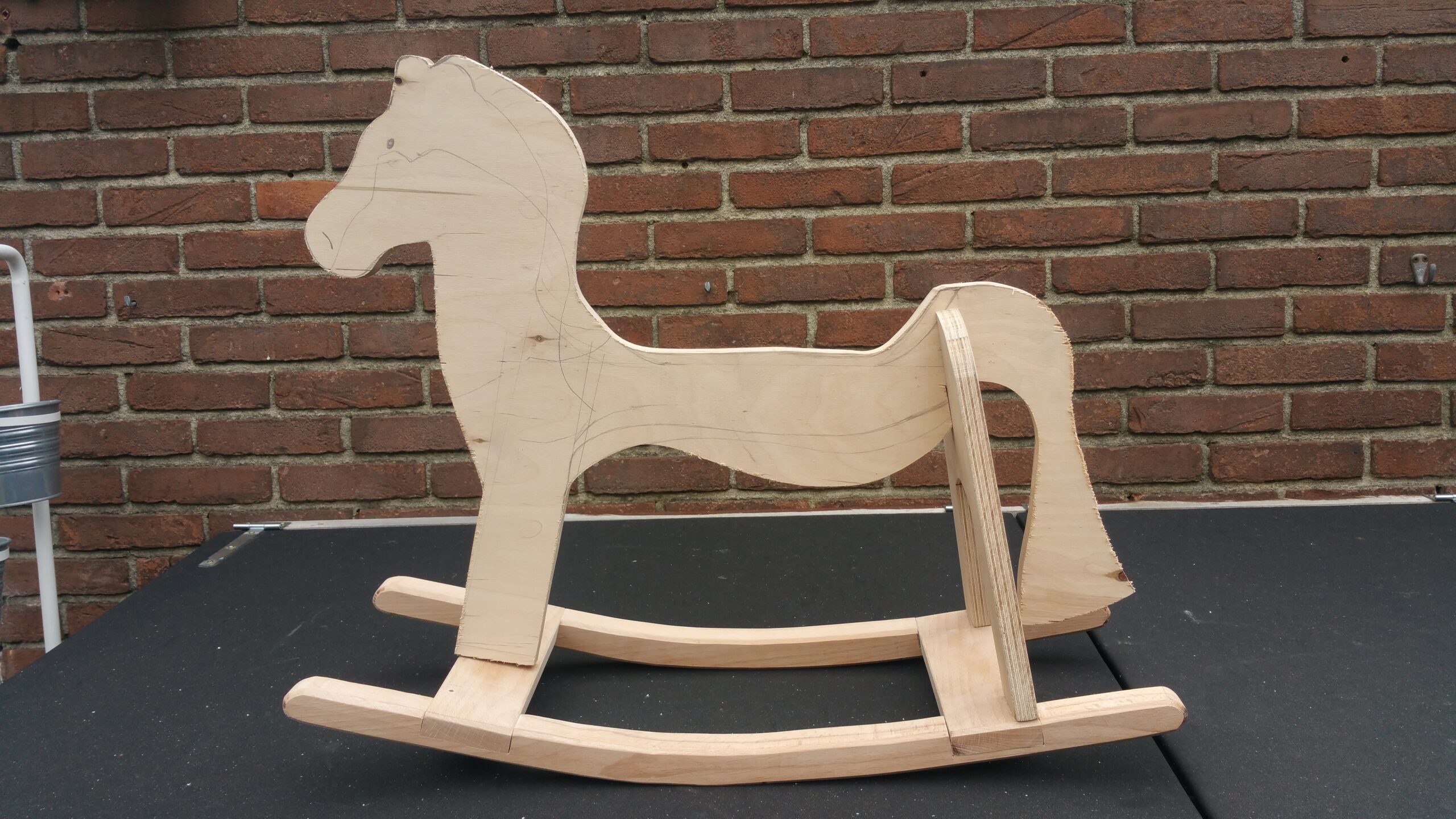 Deze keer heb ik een hobbelpaard getracht te maken. Veel kijken, uitmeten en proberen kom je best wel tot een beetje leuk resultaat. Het hoofd van het paard heb ik eerst op A4 uitgeprint en later 143% vergroot (A3) voor het gewenste resultaat. Het onderstel is gemaakt van beuken hout, de rest van Popelier multiplex.