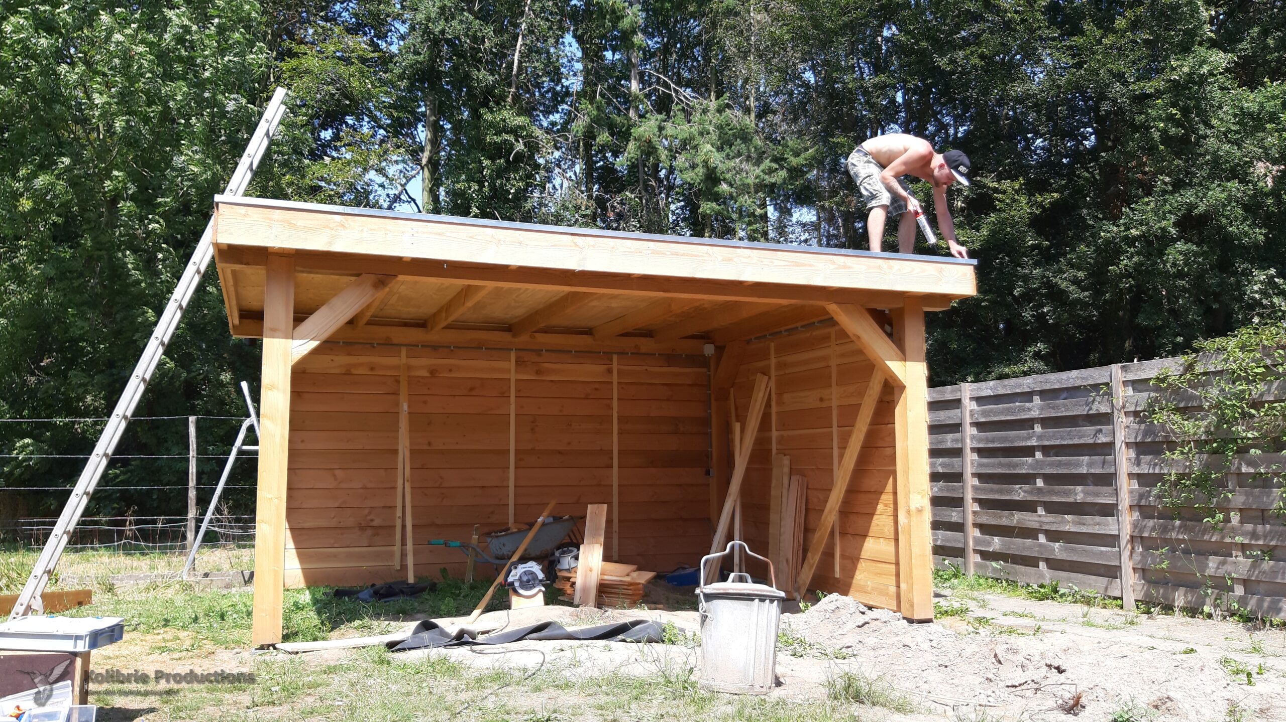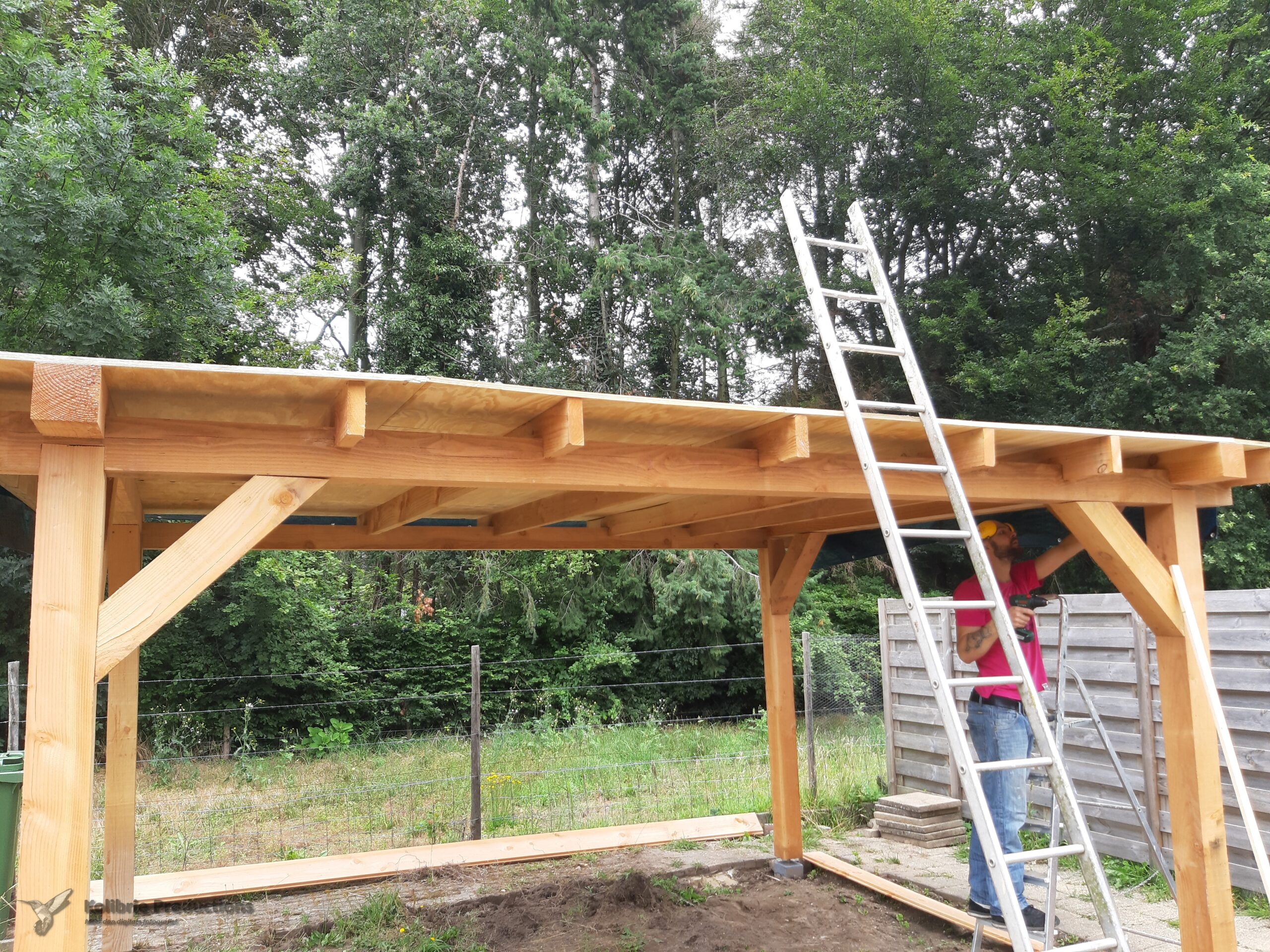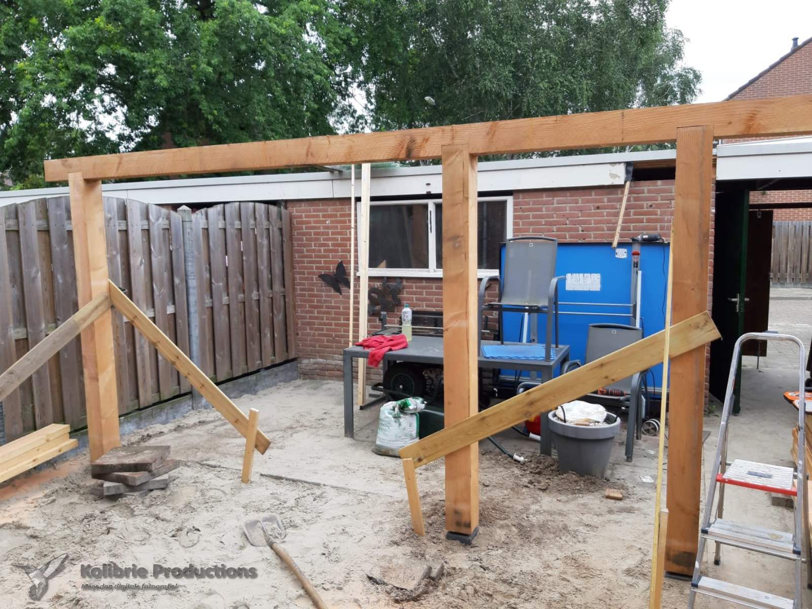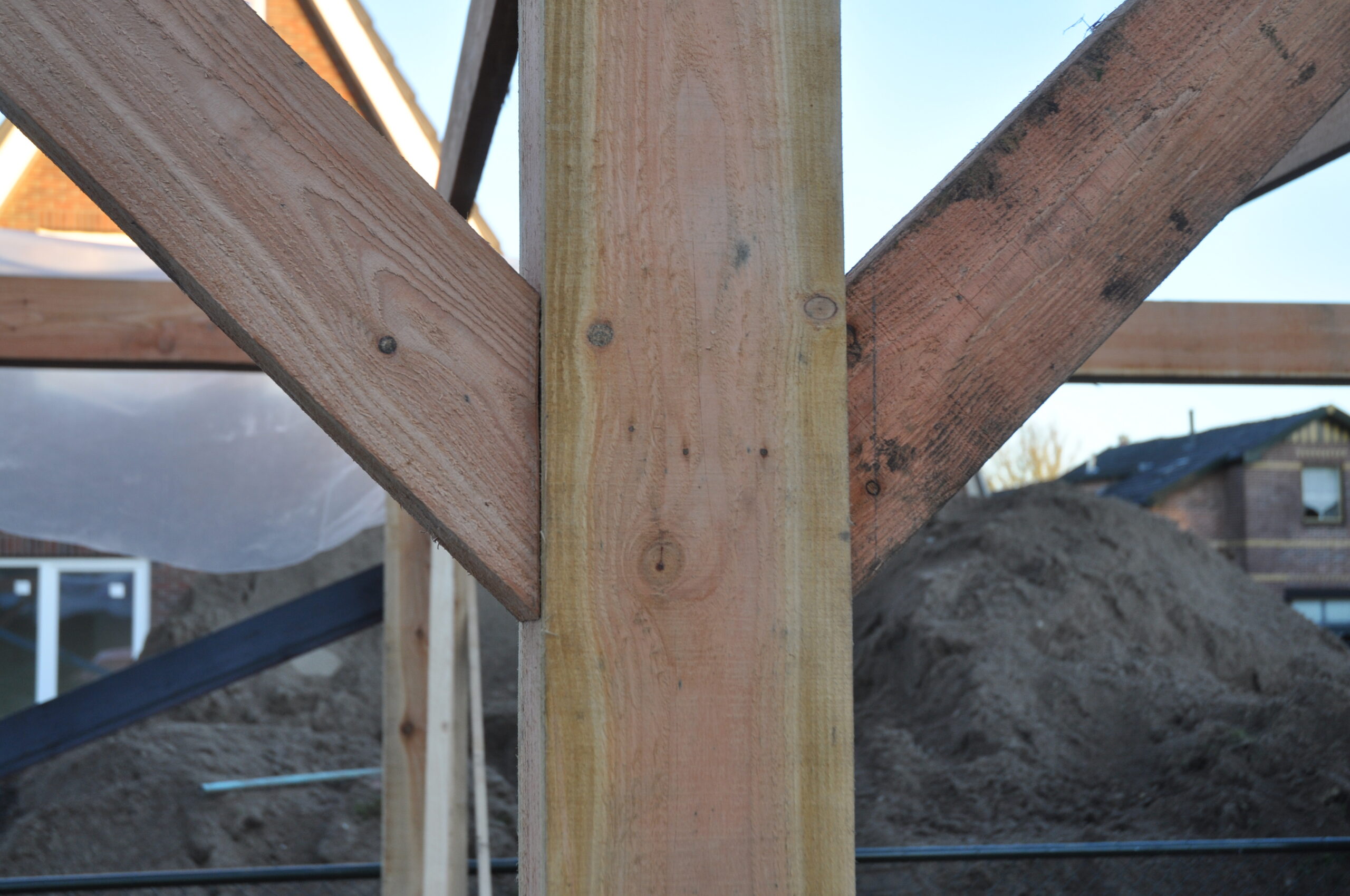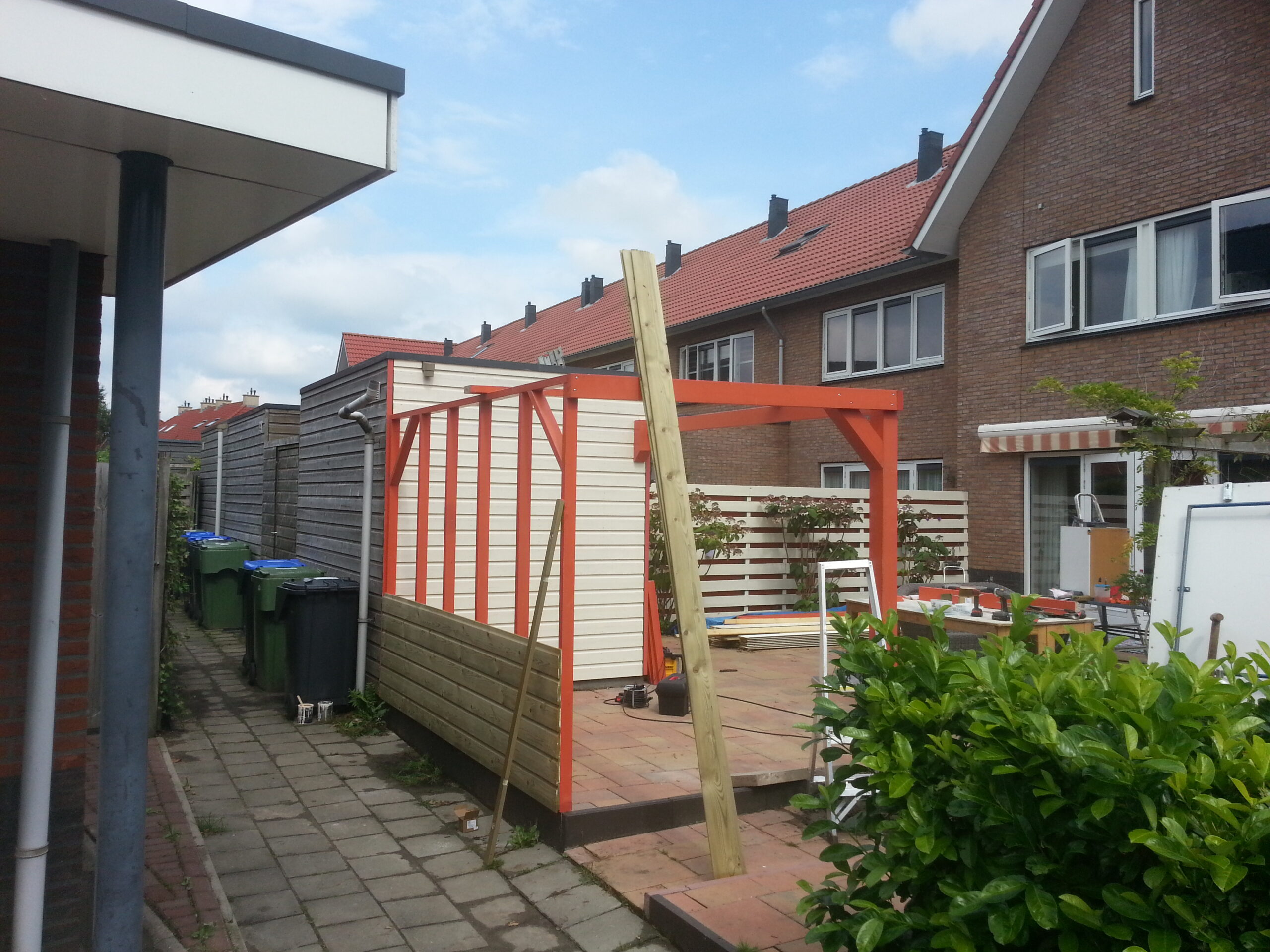 Deze ontspanningsruimte is in opdracht van Rein en Anneke gebouwd achter hun huis.  Ook deze is geheel gebouwd met pen gat verbindingen en hierin komen, in het geraamte, weinig tot geen schroeven en spijkers aan te pas.