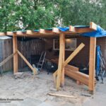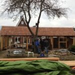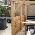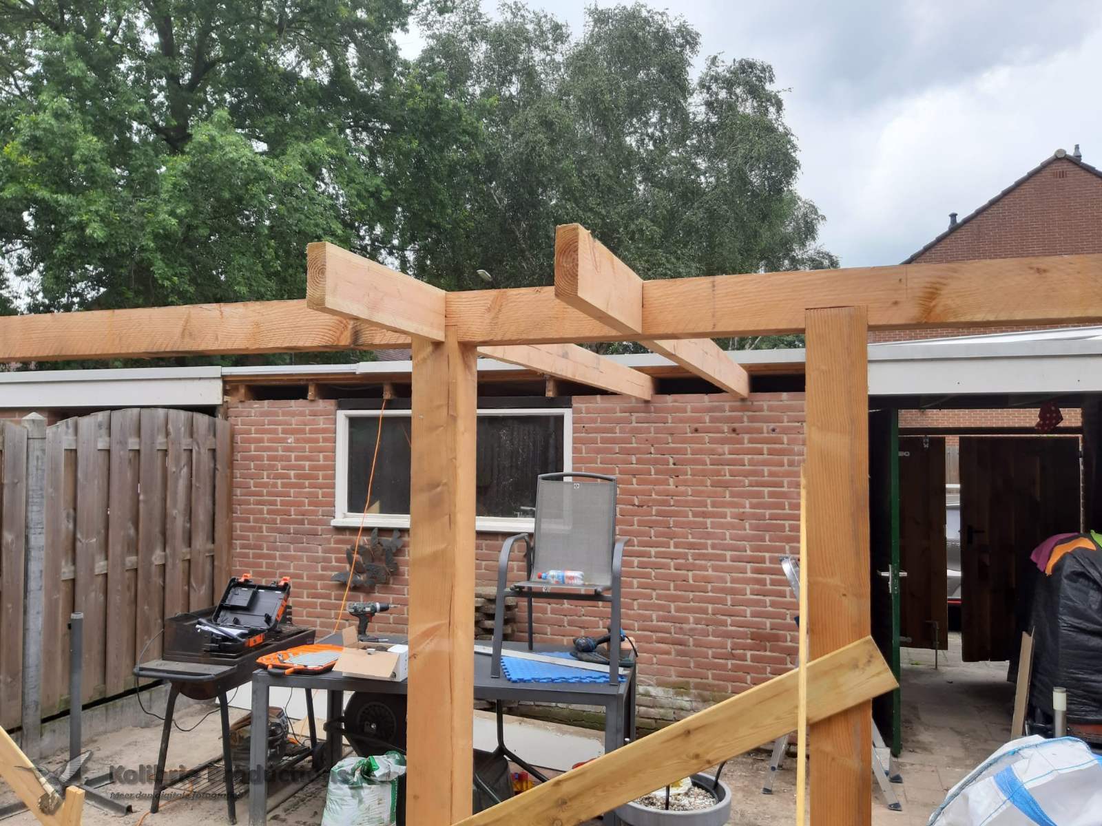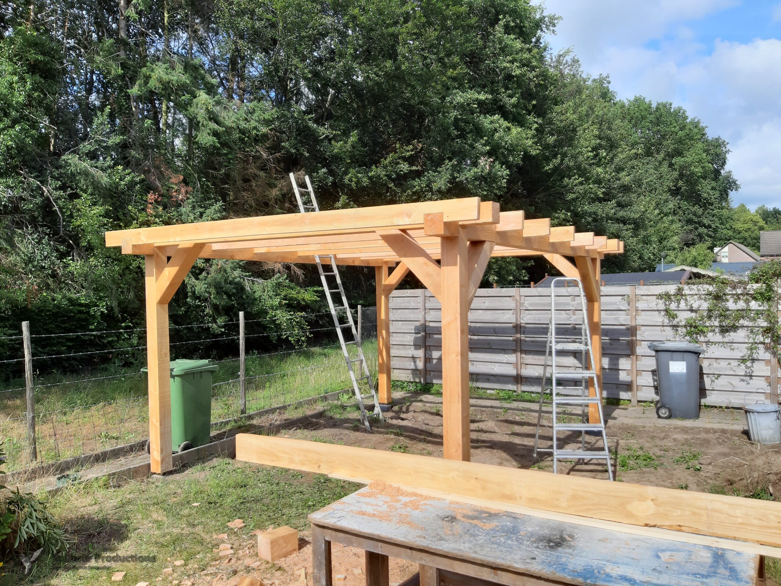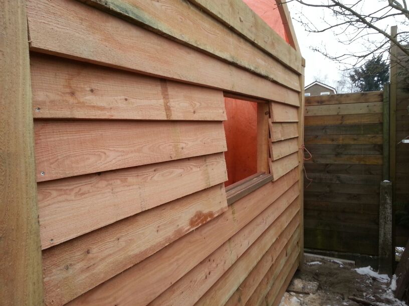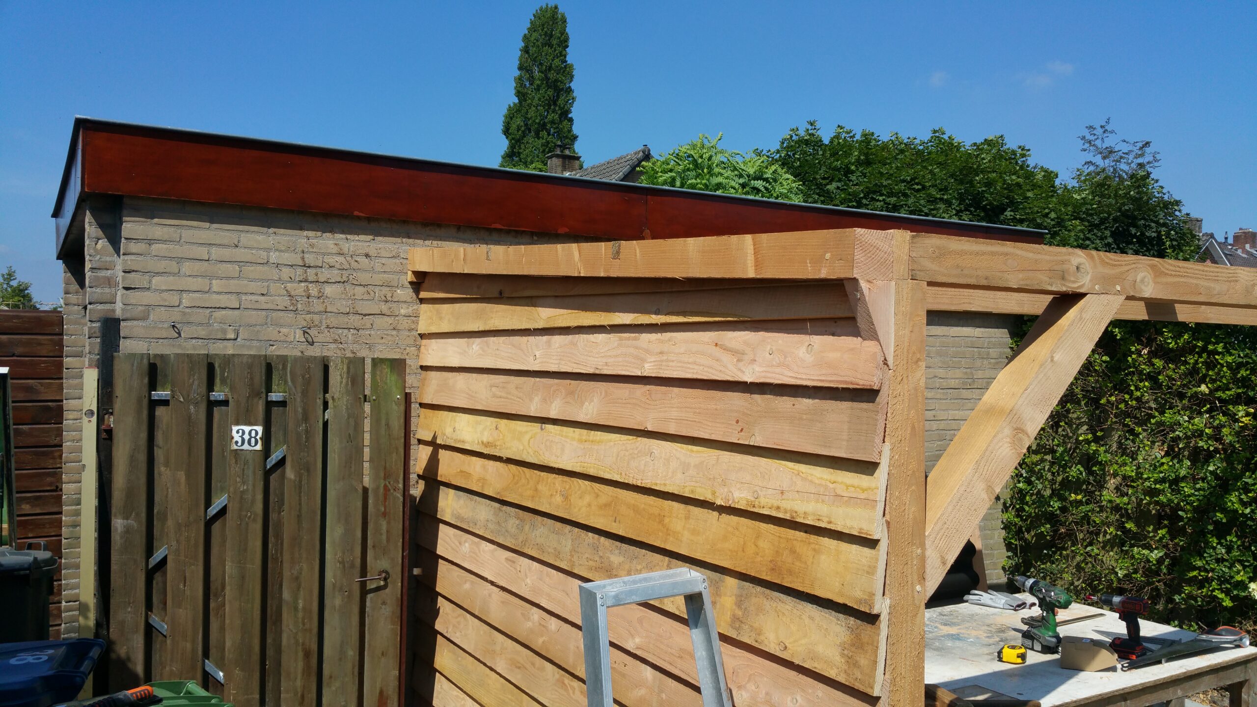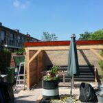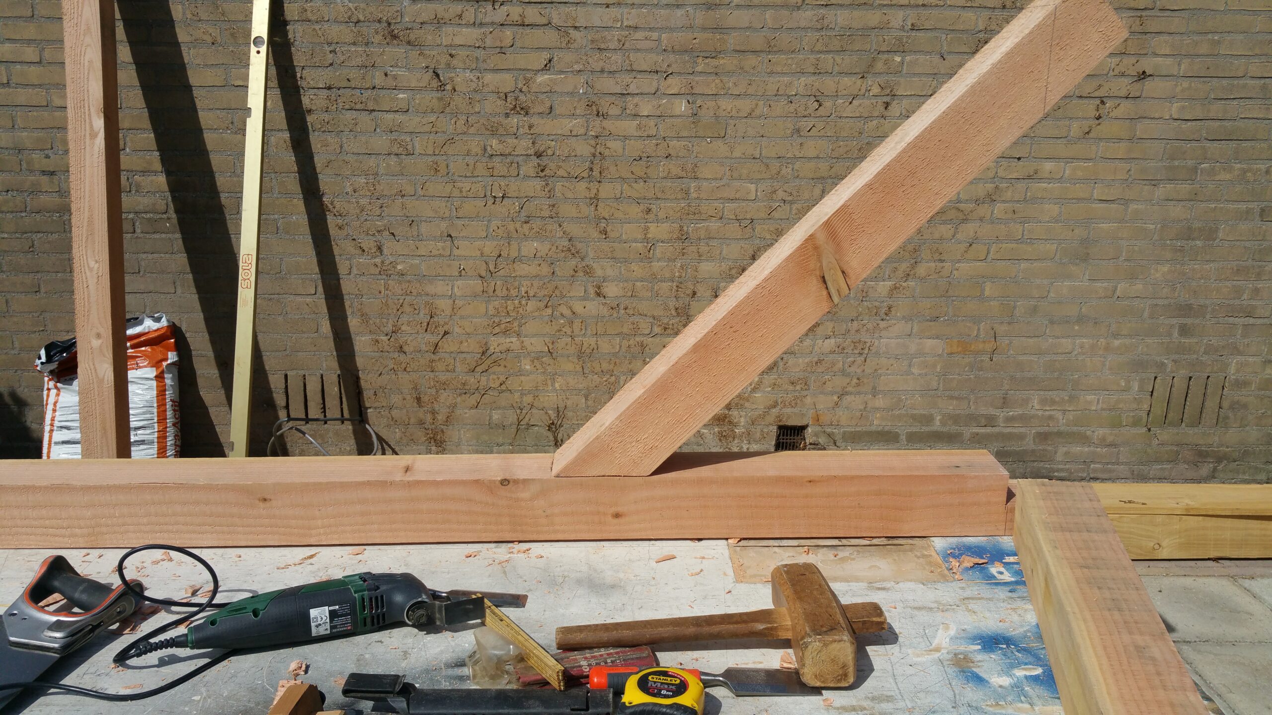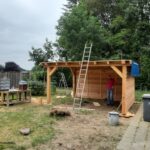 Deze ontspanningsruimte is in opdracht van Rein en Anneke gebouwd achter hun huis.  Ook deze is geheel gebouwd met pen gat verbindingen en hierin komen, in het geraamte, weinig tot geen schroeven en spijkers aan te pas.