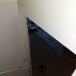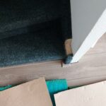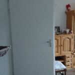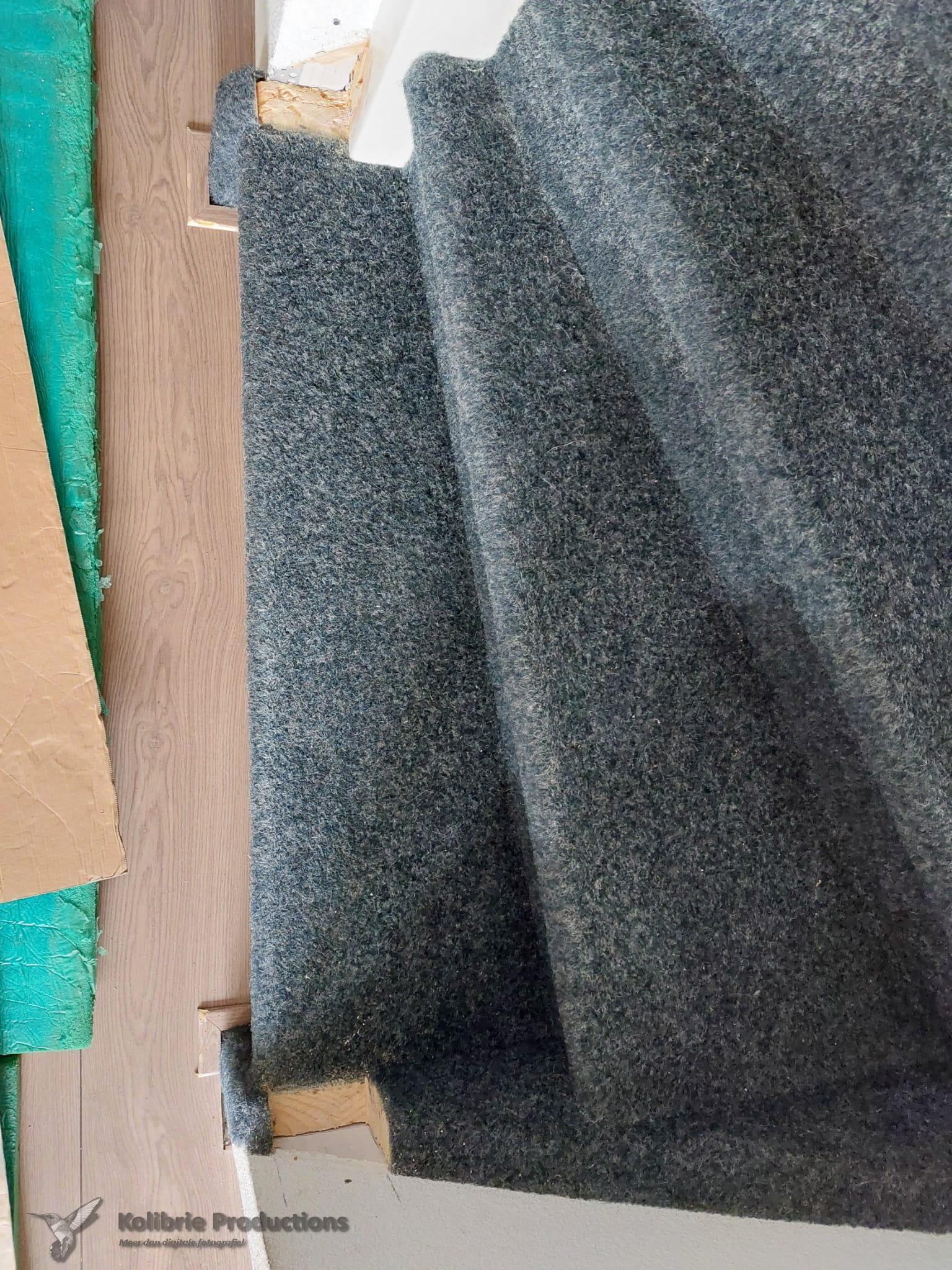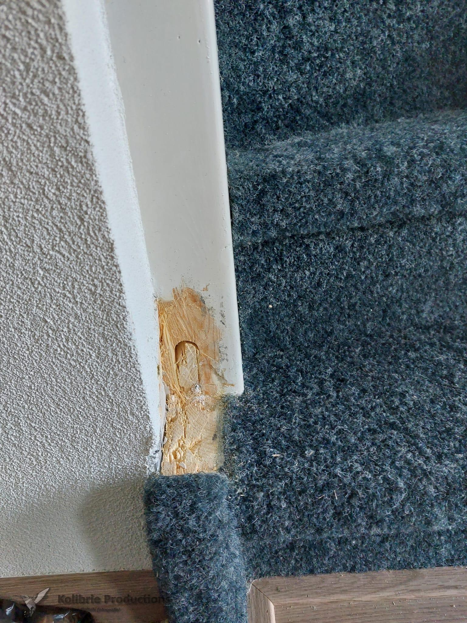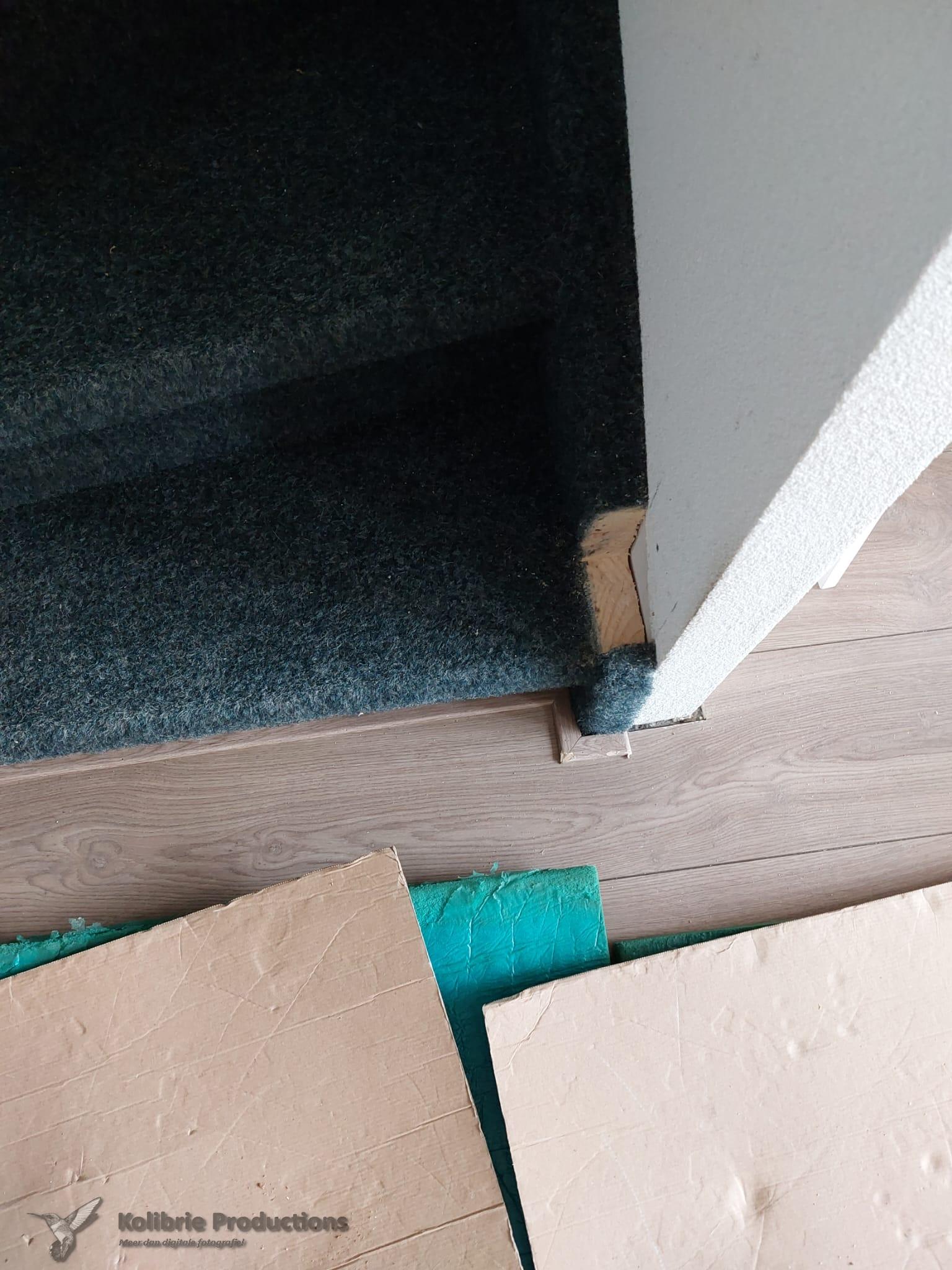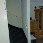 In deze woonkamer is ook de trapopgang naar boven. De bewoners hadden hier een gordijn voor hangen om de warmte niet direct naar boven te laten gaan. Nu wilde men er graag een deur voor hebben, dat kan gerealiseerd worden en dat is dus ook gedaan.