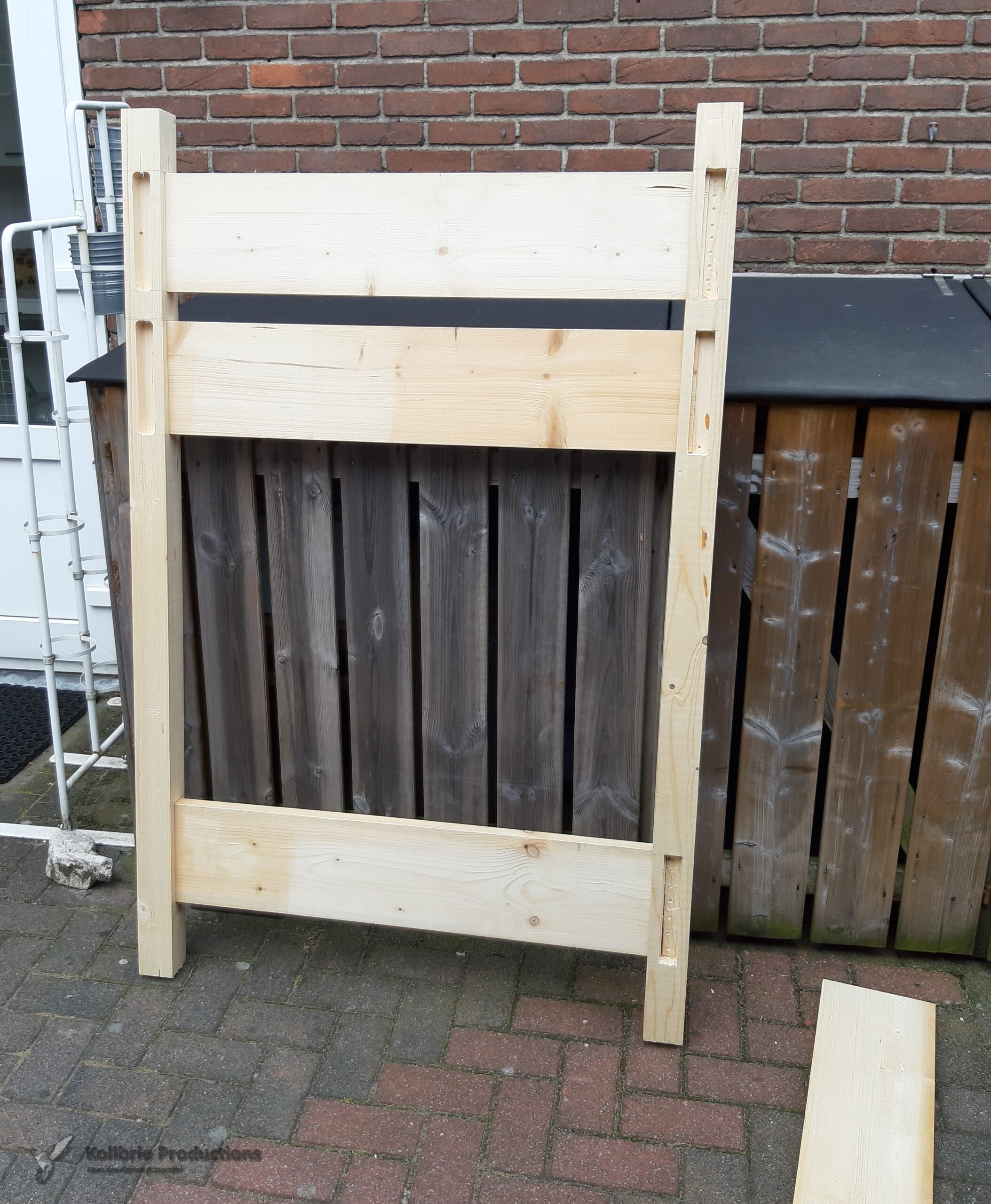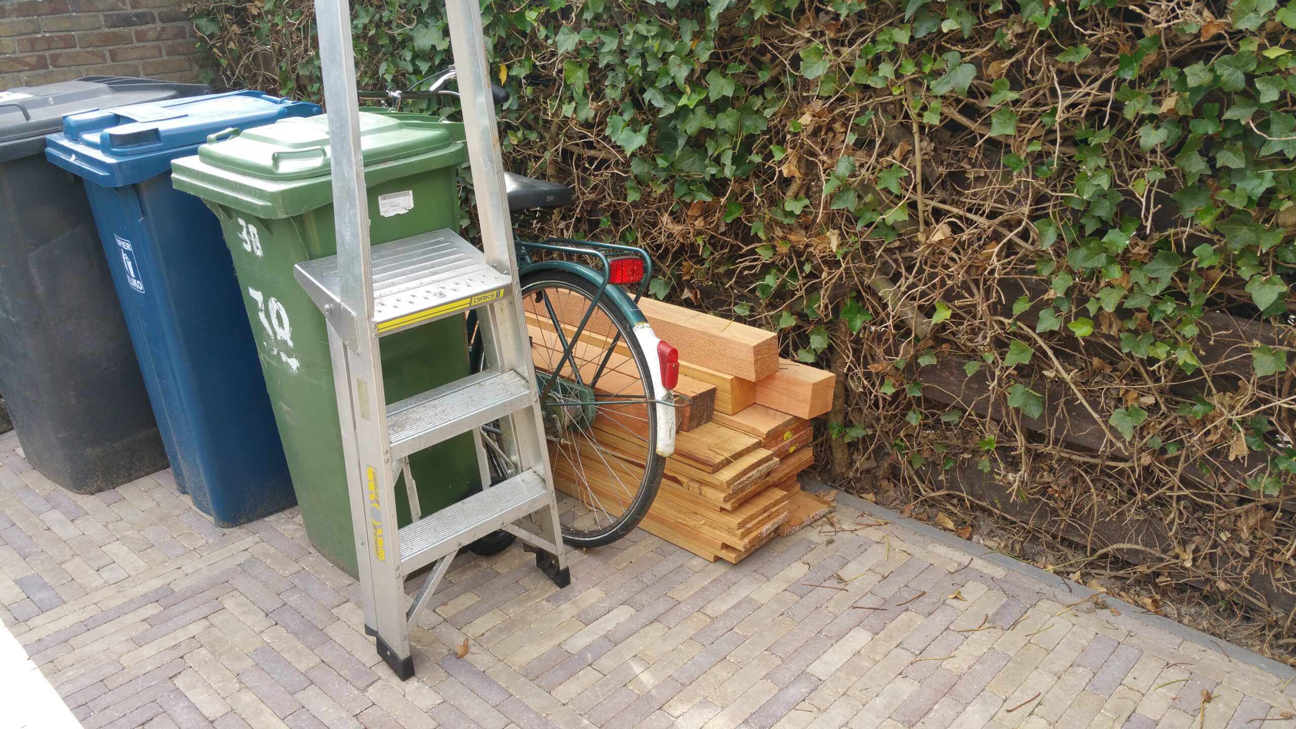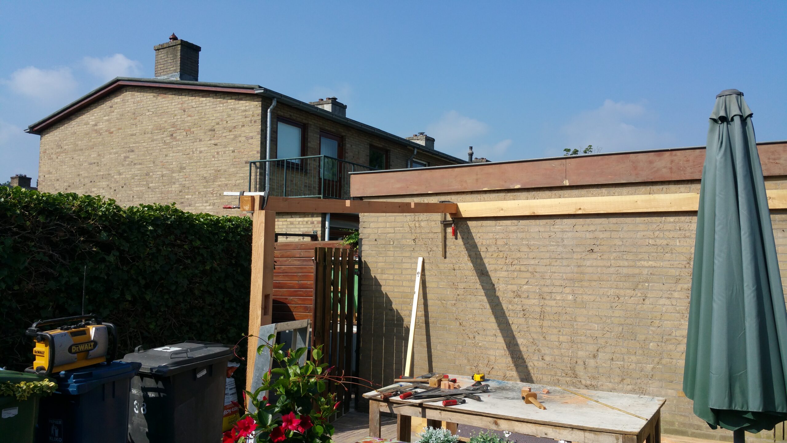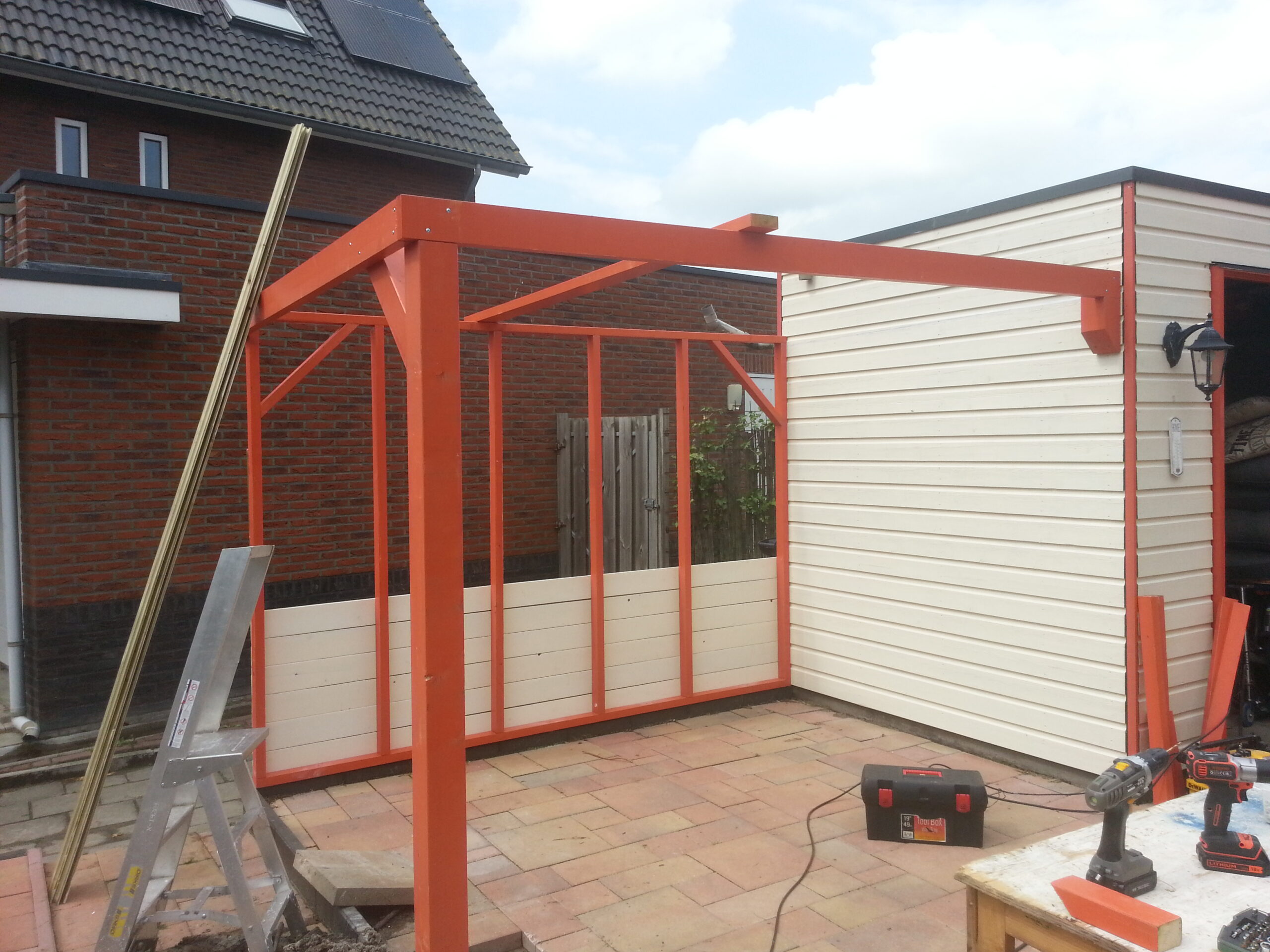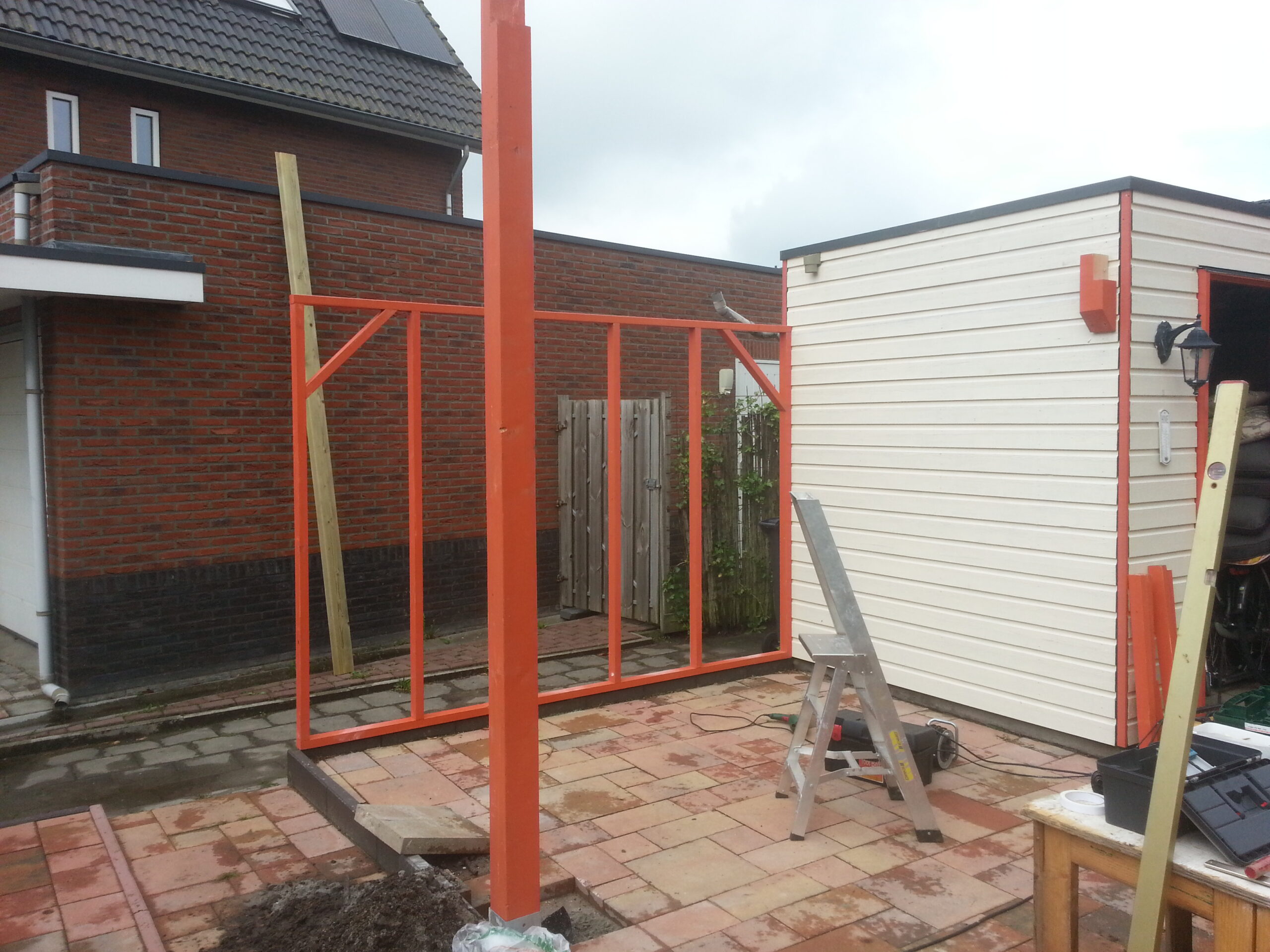Mijn zoon wilde graag een lounge achter hun huis. Samen hebben we deze gebouwd. Vloer, hekjes end. heeft hij zelf geplaatst.