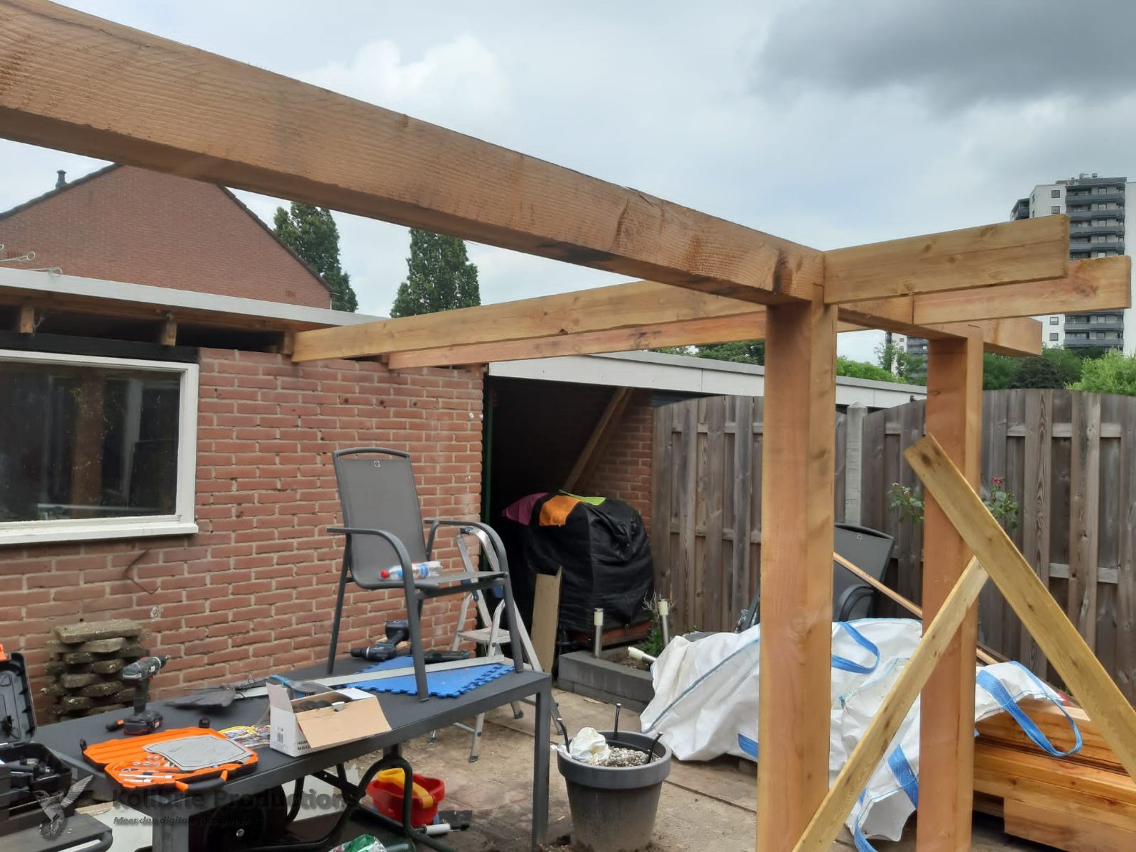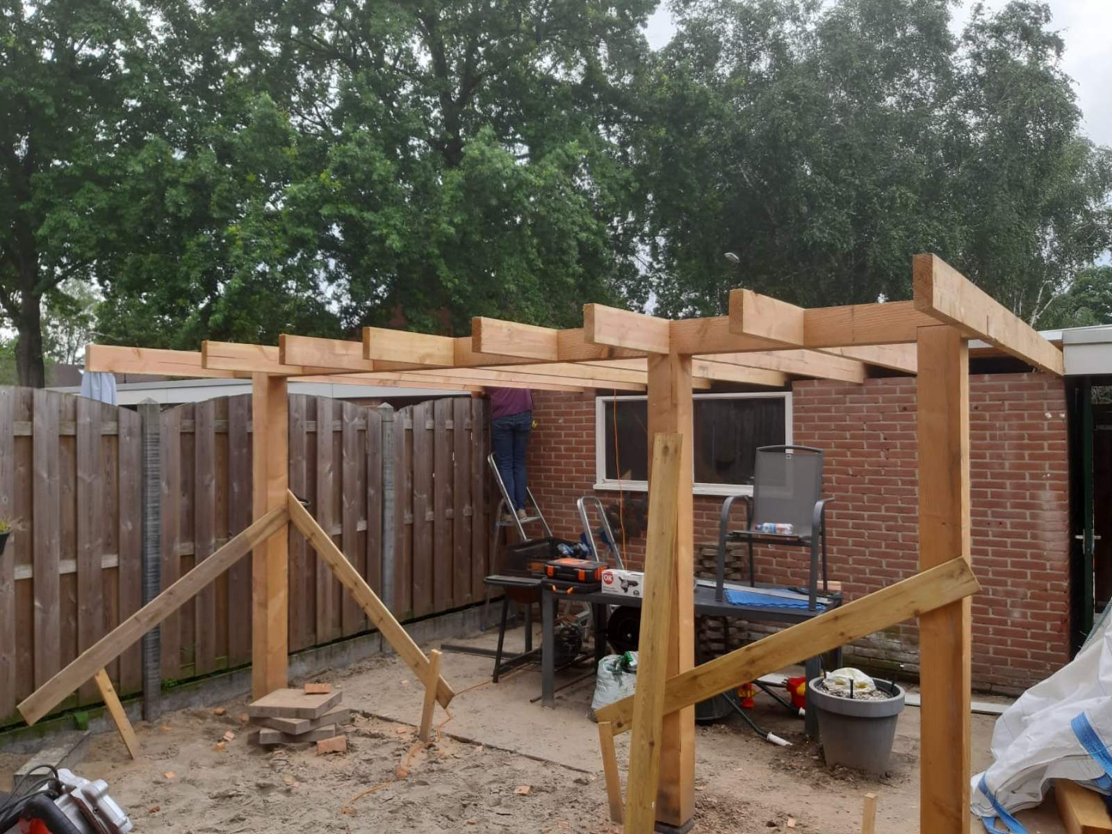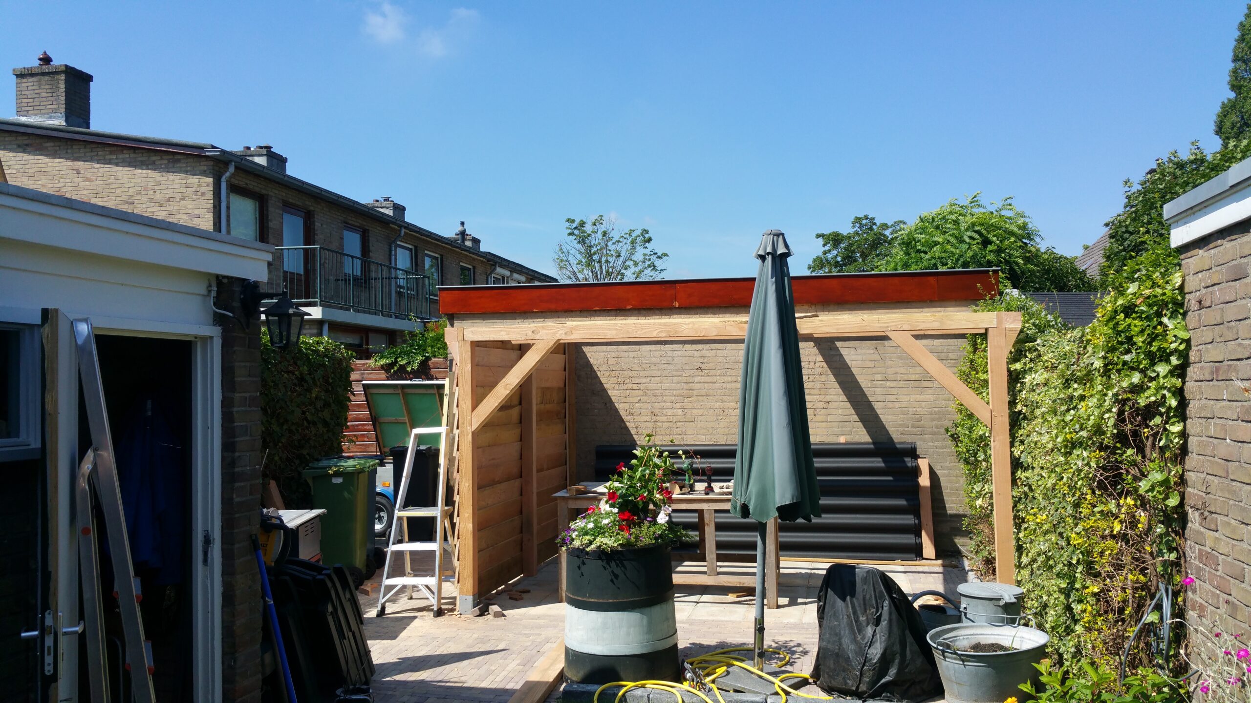 Ramon en Dominique wilden in hun tuin een lounge ruimte waar ze kunnen genieten van het buiten zijn. Samen met Ramon hebben we dit voor hun gebouwd.